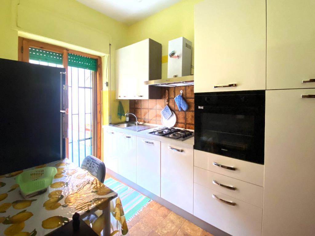 All’interno la disposizione è ottimale: al piano terra troviamo un ampio soggiorno, cucina con accesso diretto alla corte esterna ed un bagno finestrato di servizi, confortevole per la zona giorno e per gli ospiti; il piano primo ospita la zona notte, composta da due spaziose camere matrimoniali, di cui una con balcone vista mare, ed un bagno finestrato con doccia.