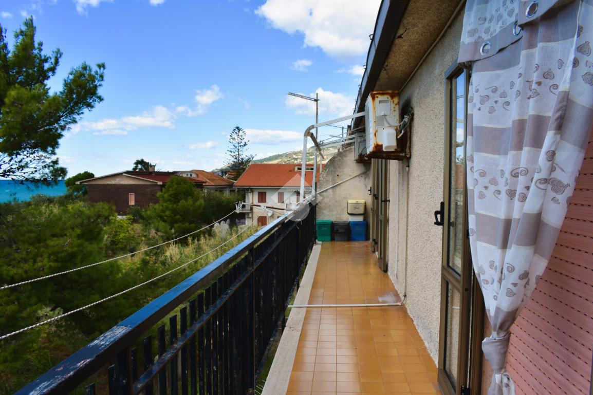 angolo cottura;soggiorno doppio con camino e accesso ad una lunga balconata vista mare;camera matrimoniale con balcone esposto ad est;bagno finestrato;pratico ripostiglio.L’immobile è dotato di riscaldamento autonomo a gas, alimentato da una cisterna privata situata all’interno della corte.