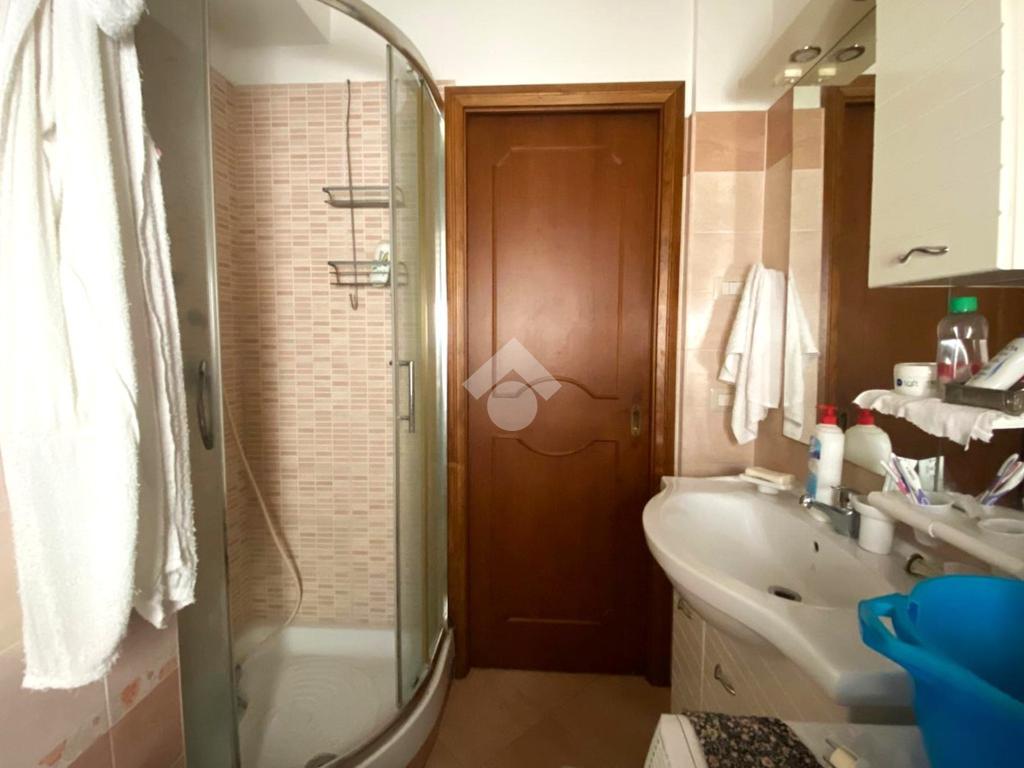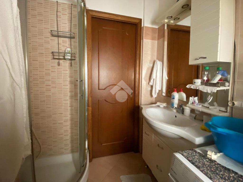 L’appartamento, in buono stato di manutenzione, ha una superficie totale di circa 78 mq; è internamente ben distribuito e composto da: ingresso, cucina abitabile ed accogliente con accesso ad un balcone vista mare e monti, due comode camere da letto, di cui una con accesso al medesimo balcone della cucina, bagno finestrato con doccia ed un pratico ripostiglio, utile come spazio aggiuntivo per l’organizzazione della casa.
