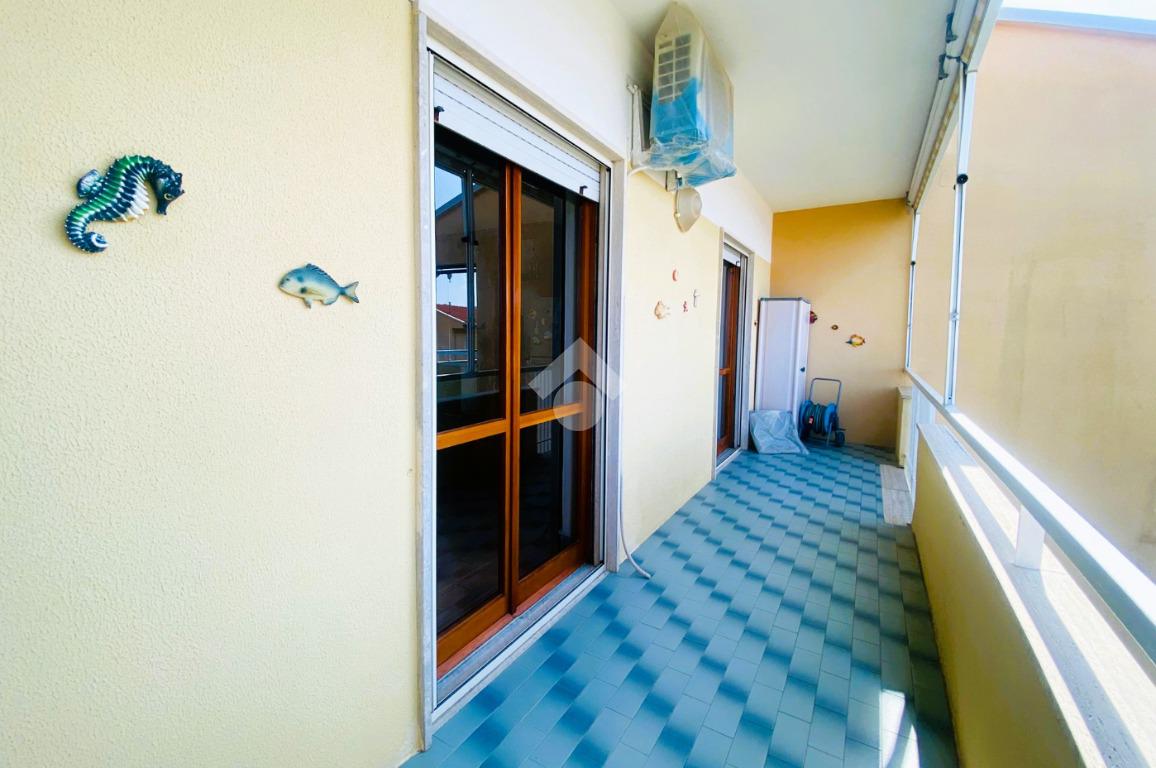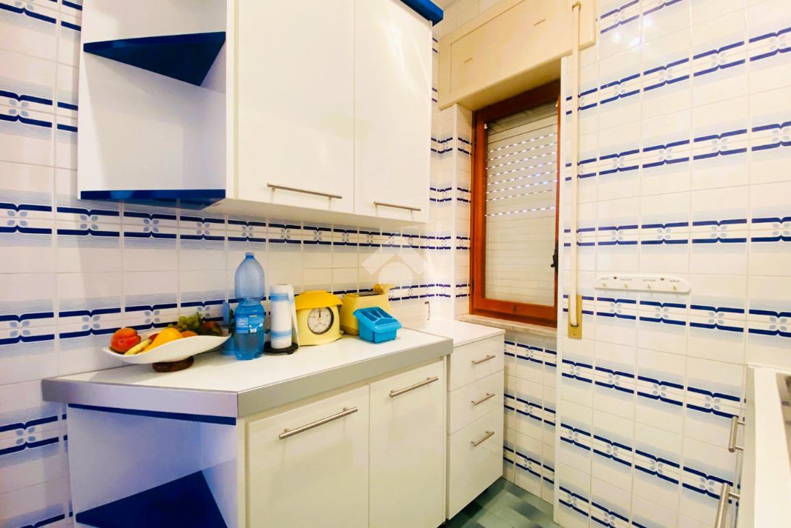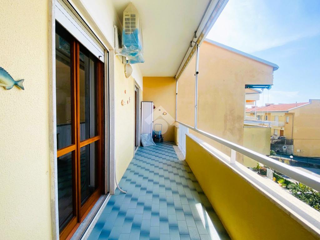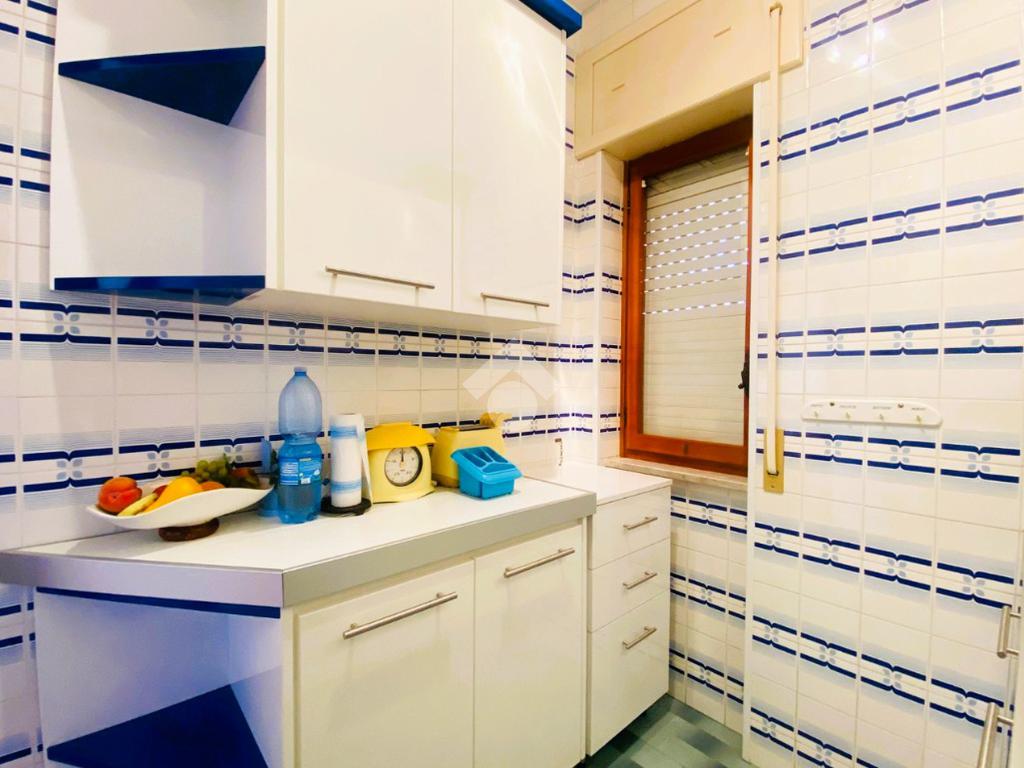 Internamente, la soluzione, in buono stato di manutenzione, ha una superficie totale di circa 67 mq ed è composta da: ingresso/disimpegno, due camere da letto, angolo cottura finestrato, soggiorno luminoso con accesso al balcone vista mare, bagno finestrato con doccia, doppio lavabo e attacco per lavatrice.