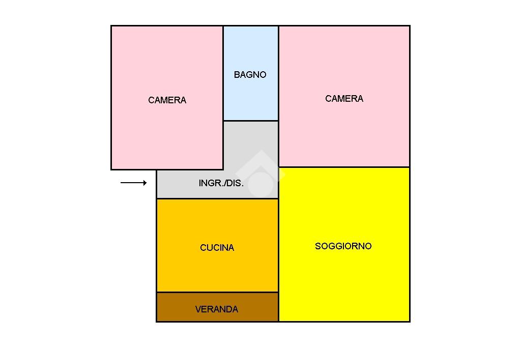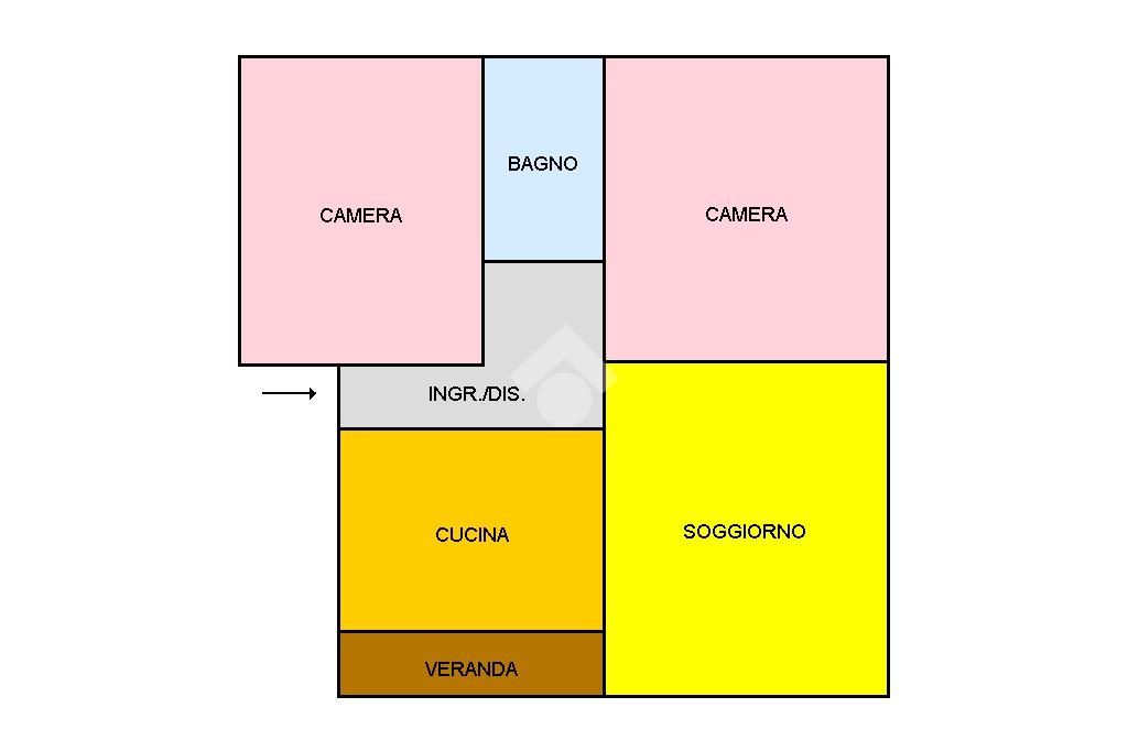 Ingresso/disimpegno;Cucina;Veranda;Soggiorno;Due camere da letto, una matrimoniale ed una doppia;Bagno finestrato.Grazie alla posizione strategica e alla vicinanza a tutti i servizi ed al mare, l'appartamento rappresenta un'opportunità da non perdere per chi cerca una soluzione comoda, funzionale e in una zona servita, ideale sia come casa vacanze che per lavoratori.