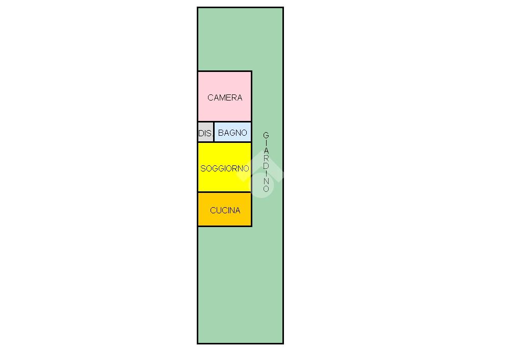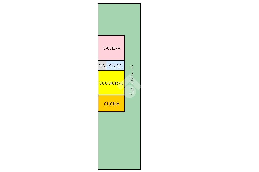 Cucinotto;Soggiorno/camera da letto;Camera matrimoniale;Bagno finestrato con doccia;Ampio giardino di circa 170 mq, attrezzato con doccia esterna (acqua calda/fredda).Completano la proprietà: